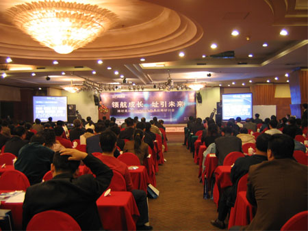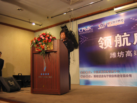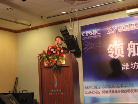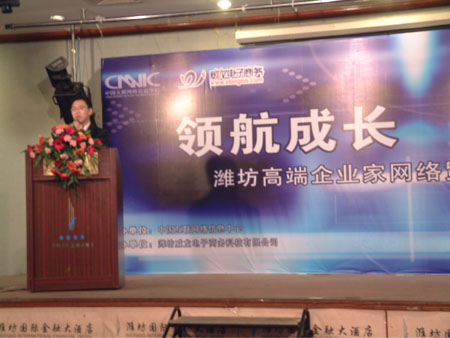 中國互聯(lián)網(wǎng)絡(luò)信息中心和威龍電子商務(wù)科技有限公司主辦的“領(lǐng)航貿(mào)易 “址”引財富——濰坊高端企業(yè)家網(wǎng)絡(luò)貿(mào)易戰(zhàn)略研討會”,于10月23日在濰坊金融國際大廈成功舉行。中國互聯(lián)網(wǎng)絡(luò)信息中心、威龍電子商務(wù)及濰坊諸多知名企業(yè)的領(lǐng)導(dǎo)近三百人出席了本次會議。會議就如何借助中文通用網(wǎng)址保護網(wǎng)上品牌、推廣企業(yè)網(wǎng)站進(jìn)行了深入的探討,同時,眾多企業(yè)負(fù)責(zé)人現(xiàn)場對自己的行業(yè)、產(chǎn)品及公司名稱等相關(guān)關(guān)鍵詞進(jìn)行了及時保護。并有許多企業(yè)代表借此機會紛紛上臺對威龍?zhí)峁┑姆?wù)提出了褒獎。