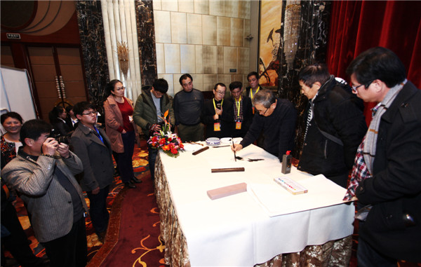 據(jù)了解,本次公益活動(dòng)以“展示書畫 奉獻(xiàn)愛心 共創(chuàng)和諧”為主題,融合“公益展示”、“慈善拍賣”、“交流筆會(huì)”等環(huán)節(jié)?,F(xiàn)場(chǎng)展出并拍賣了包括50位藝術(shù)大師的 300 余件作品。