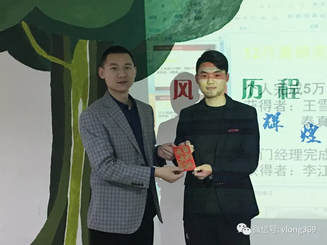 2017年度前三甲---依然被銷售二部的三位“大咖”“搶走”。重量級的獎項當(dāng)由重量級領(lǐng)導(dǎo)頒發(fā),由威龍公司董事長王大威為他們頒發(fā)現(xiàn)金獎勵,并對年度業(yè)績和大家的努力做了總結(jié)性的講話。